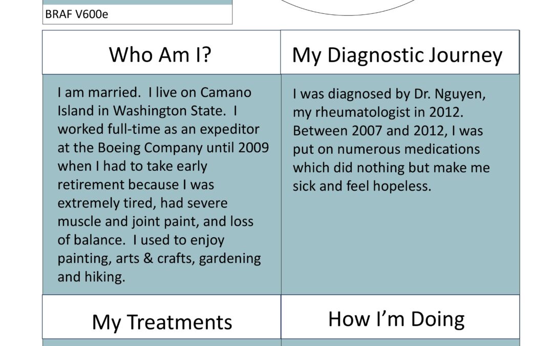 जब मेरा निदान हुआ, तो मुझे बताया गया कि मेरी हालत जितनी गंभीर है, मेरे पास जीने के लिए लगभग 48 महीने ही बचे हैं। मैं अपनी दवाइयों, परिवार, दोस्तों, चर्च, ईसीडीजीए समुदाय के स्वयंसेवकों, डॉ. हेंड्री और उन कई डॉक्टरों से मिले सहयोग को लेकर बहुत आशान्वित हूँ जो इस बीमारी के इलाज में इतना समय लगाते हैं।